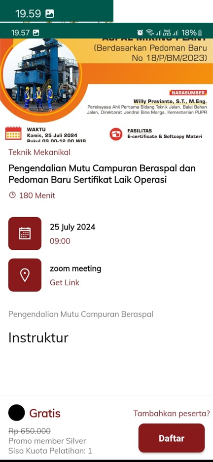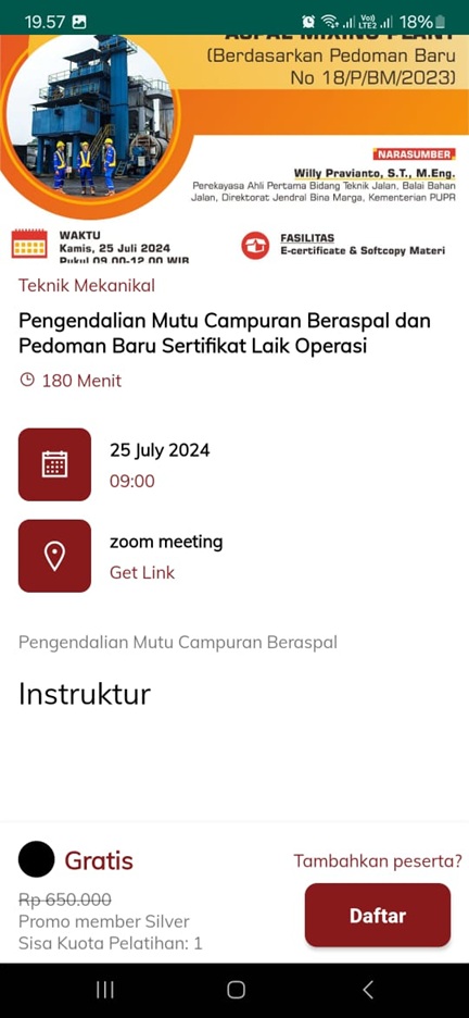 | 4 | SSC Permasalahan dan Penanganan Konstruksi Jalan di Atas Tanah Ekspansif | Dr. Rudy Febrijanto, S.T., M.T. | 200 Menit |