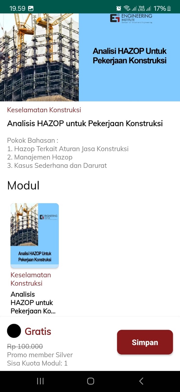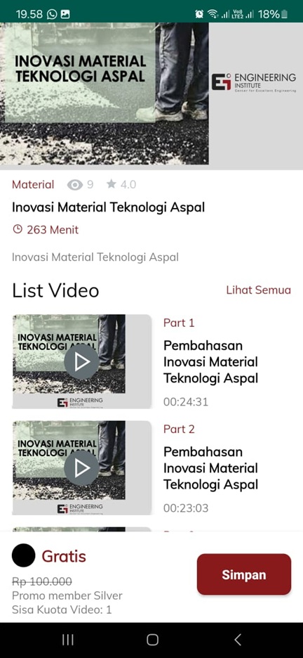 EI Mobile App merupakan aplikasi yang dibangun untuk para engineer yang ingin mengupgrade pengetahuannya dibidang keteknikan namun terkendala waktu, lokasi, tenaga atau biaya. Materi-materi yang diajarkan dalam pelatihan yang EI selanggarakan dapat diakses melalui aplikasi EI Mobile melalui smartphone.